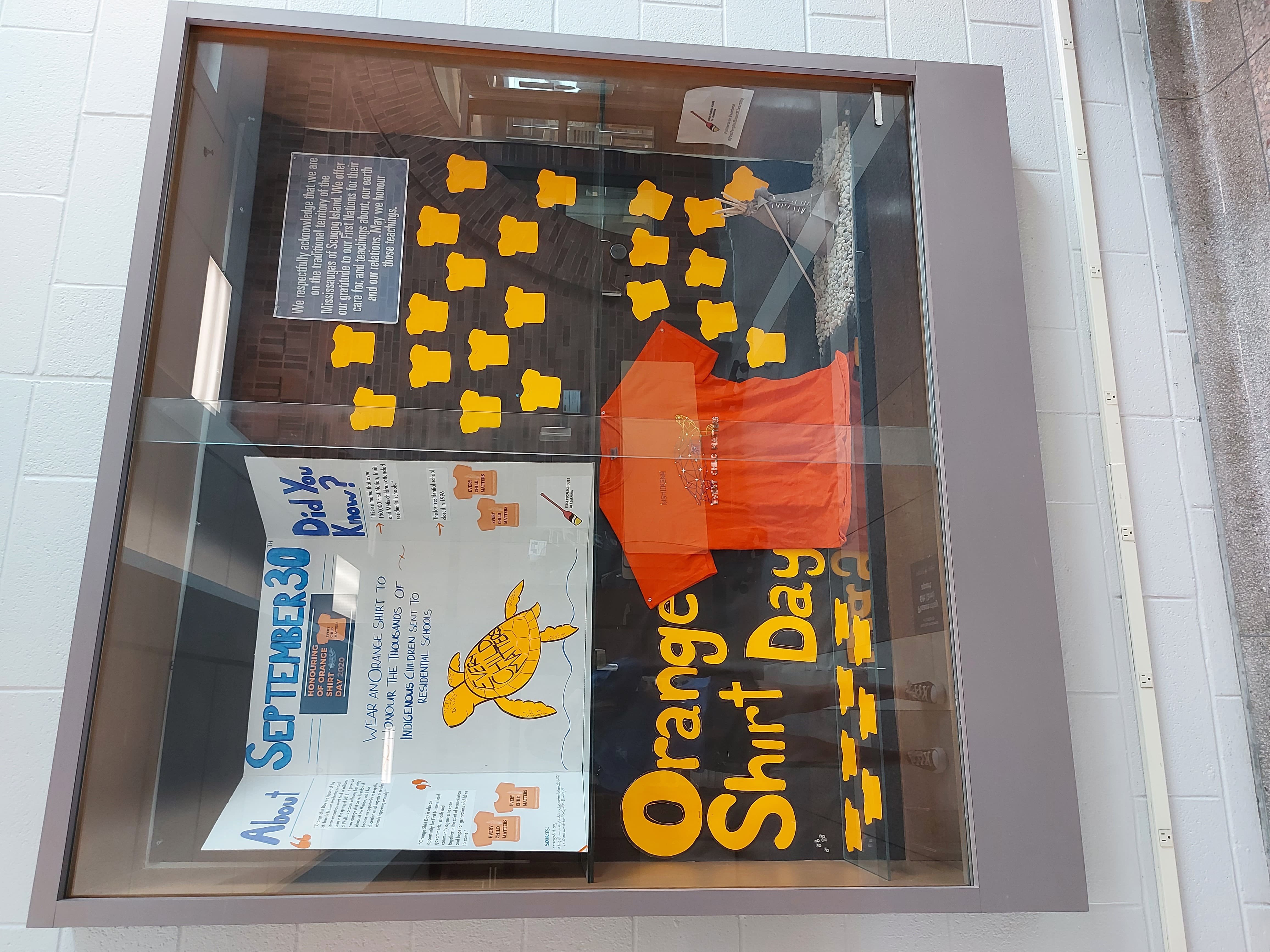 We also have a beautiful display case in the hallway of Building A, just across from the library. Here you can find educational visual displays of various Indigenous identities and experiences in Canada.