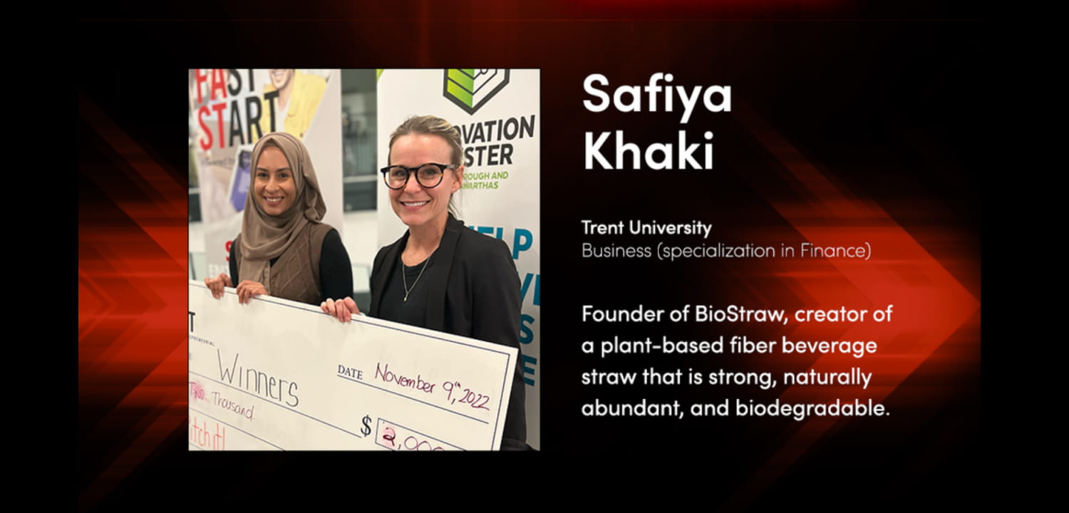 Each year, tons of single-use plastic waste end up in Canadian landfills. As the country shifts away from these environmentally challenging products, businesses can step up with innovative ideas. At least, that’s how recent Trent University graduate, Safiya Khaki, sees it. Last year, while in the final year of her Bachelor of Business Administration degree, Ms. Khaki delivered her winning pitch to a panel of local business professors in the Pitch IT! Student Entrepreneurial Competition and came away with a $2000 cash prize. Her idea? The BioStraw—a plant-fibre-based straw that is not only biodegradable but strong enough not to disintegrate while drinking. In effect, Ms. Khaki’s idea solves two problems—environmental waste and soggy straws—at the same time.