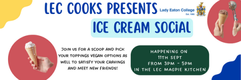 Get ready for a sweet treat to kick off your Trent journey! Lady Eaton College is thrilled to invite you to our LEC Cooks: Ice Cream Social. We will enjoy a treat together and discuss recipes you are interested to explore together through the year ahead.