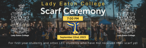 The Scarf Ceremony is an opportunity for first year students (and those who have yet to receive their scarf) to be welcomed into Lady Eaton College by receiving their college scarf, meeting other LEC students, and celebrating the beginning of this new journey together.