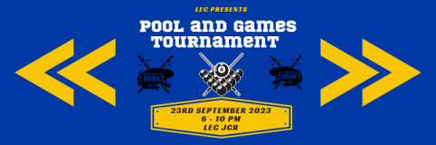 Get ready for an evening packed with friendly competition and good times at the LEC Pool and Games Tournament. A range of games will be available to play that guarantee a good laugh and some solid fun. Whether you're a pool pro or just up for a good-natured challenge, this event is your shot at connecting with fellow students and creating memories that stick. Brought to you by LEC Cabinet!