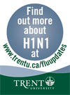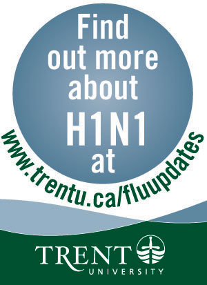 The new influenza A (H1N1 or human swine flu) appears to be as contagious as seasonal influenza, and is spreading fast, particularly among people ages 10 to 45. The seriousness of the disease ranges from very mild symptoms to severe illnesses. Though there have been deaths associated with the illness, most people who get the flu recover without antiviral treatment or medical care. Of the more serious cases, more than half of people who are hospitalized with the flu have underlying health conditions or weak immune systems. Video courtesy of Ottawa Public Health To help keep Trent faculty and staff healthy and reduce the risk of a flu pandemic in our community, here are some tips and explanations along with links to other great resources: