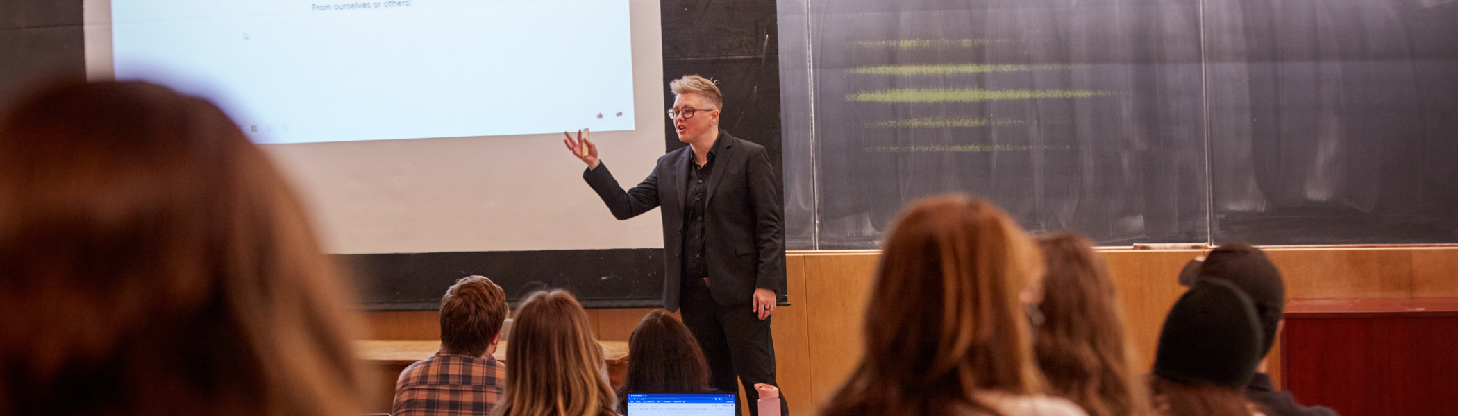 This session introduces high school students to the big ideas of communication through a fast-paced, interactive taste of Trent’s Communications program.Students explore how communication evolved—from spoken language to AI—and why it matters in a complex, changing world. The session blends a participatory lecture with a hands-on workshop focused on curiosity, clarity of purpose, and self-expression. Through quotes, visuals, and reflection, students practice turning ideas that inspire them into their own thinking.