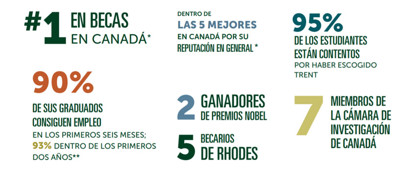 - El 96 % de los egresados de Trent consiguen trabajo dentro de los dos años de la graduación