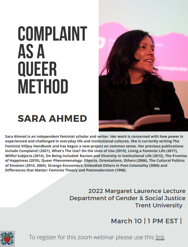 Sara Ahmed, "Complaint as a Queer Method" - YouTube