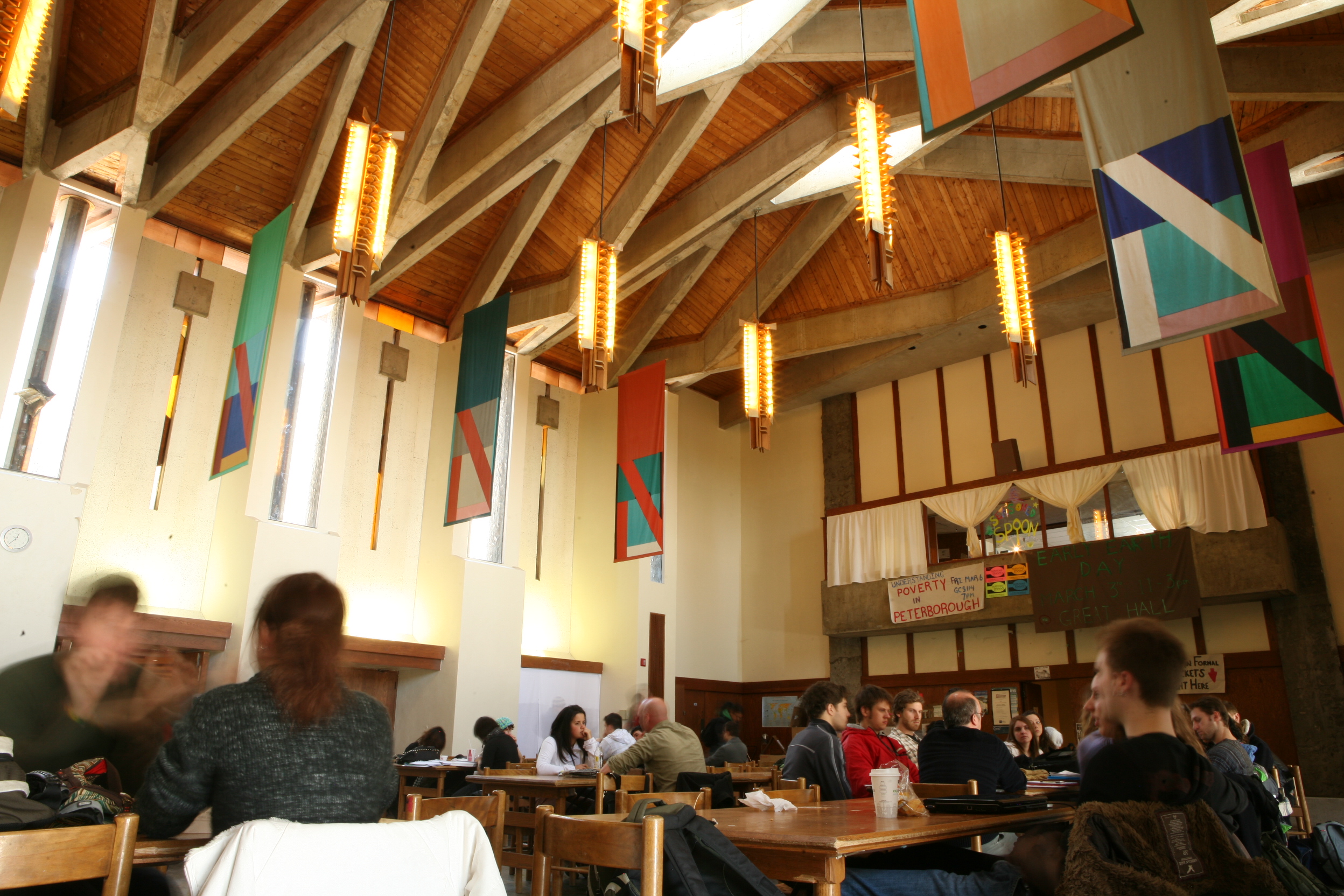 Named in honour of the explorer Samuel de Champlain, the college is situated right on the bank of the Otonabee River. Champlain’s spirit of adventure, discovery, and global citizenship are captured in the college motto: “continuer nos decouvertes”, “continue our discoveries”. That spirit lives on in the programs, people, and architecture of Trent’s Champlain College. To Champlainers, architecture matters. Its buildings are renowned for their avante garde use of natural materials and traditional elements in modernist form. Walking through its winding paths and staircases, or through the courtyards or to the banks of the river you’ll feel how the architecture creates a feeling of community, takes inspiration from the natural environment, and provides a safe space for intellectual discovery, adventure, reflection and hearty engagement with a community of learners. At the centre of the college is the impressive Great Hall, which serves as the college's gathering place for formal dinners and events, as well as a daily dining and study hall. Near the great hall are a Junior Common Room for student recreation and study, The Seasoned Spoon, an independent cooperatively run café serving healthy, organic, locally grown, affordable food, and the newly renovated Champlain Living Learning Commons.