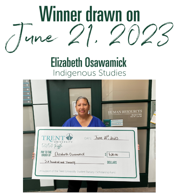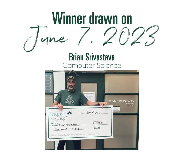 The Department of Human Resources is pleased to host the Trent University employee 50/50 bi-weekly raffle draw, to help support student bursaries and scholarships at Trent University. Draws continue bi-weekly until April 21, 2025.