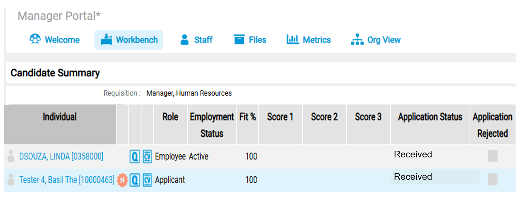 - Under "Application Status" candidates will be marked as one of the following categories: