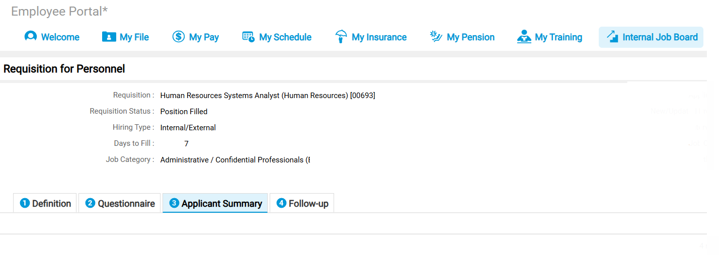 - Once the job competition has closed and the applications have been released by Human Resources, you can select the requisition to view applications.