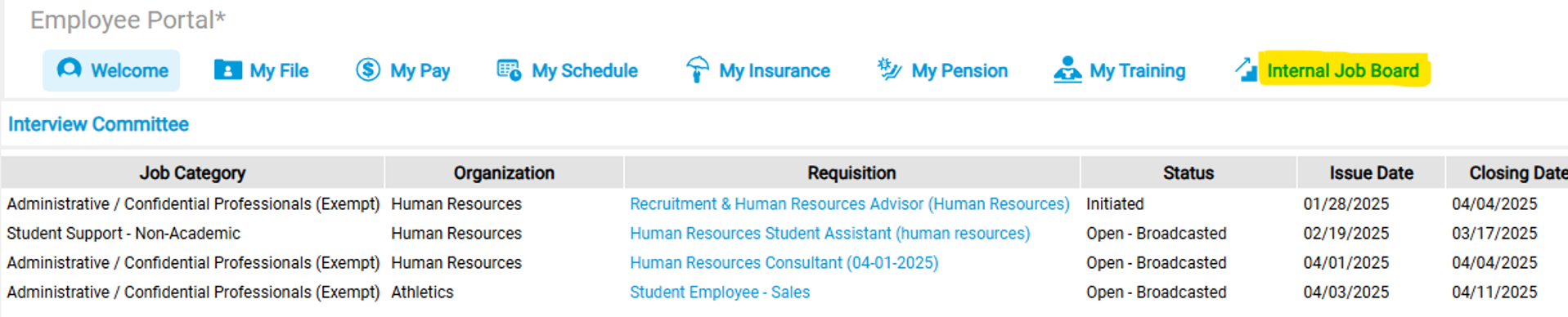 - Select the Internal Job Board and scroll down to “Interview Committee”.