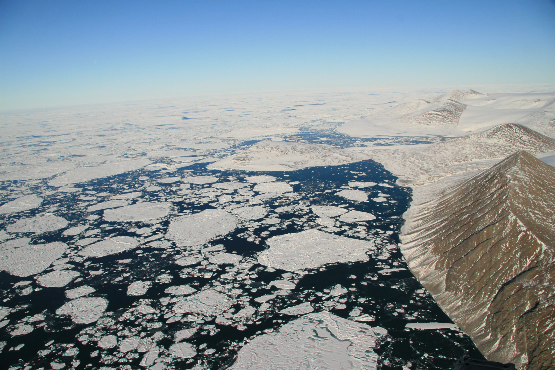 8) Markham Fiord in August 2008 after the Markham Ice Shelf broke away. Compare with the photograph above. Photo courtesy of Denis Sarrazin, Laval University.