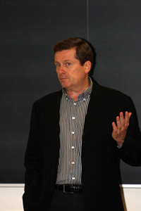 Mr. Tory drew extensively from his corporate experience to describe his approach to accountability to stakeholders as a leader. He advocated for the use of technology to make government more transparent today, a change he believes is necessary to re-engage citizens in the political process.