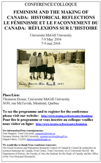"Feminism and the Making of Canada: Historical Reflections" will look at how women's history, gender history, and feminist analyses of Canadian history have had a profound impact on how Canadians see our past, our present, and the world around us. The idea for the partnership originated with Dr. Joan Sangster, director of the Frost Centre for Canadian Studies and Native Studies at Trent. Prof. Sangster was last year the Seagram Chair at the Institute for the Study of Canada, at McGill and in contact with other academics in Montreal, not only at McGill, but also at Université du Québec à Montréal (UQAM). The idea was supported and each university invited interested graduate students to join the organizing committee. The conference will be bilingual, and was co-organized by Prof. Suzanne Morton at McGill and Prof. Magda Fahrni at UQAM as well as two Frost Centre doctoral students in Canadian Studies, Donica Belisle and Amy Warnar-Brown, and graduate students from McGill and UQAM, Liz Kirkland and Amélie Bourbeau. "This conference has provided a great opportunity for Trent Ph.D. students to connect with graduate students and faculty members in Quebec and take an active role in conference organizing," says Prof. Sangster "Feminism and the Making of Canada: Historical Reflections" is supported by a SSHRC conference grant as well as funding from the Frost Centre and McGill's Institute for the Study of Canada, Department of History, Faculty of Arts, and the Office of the Vice-President (Research). Download pdf of poster for more information. Posted May 4, 2004 |