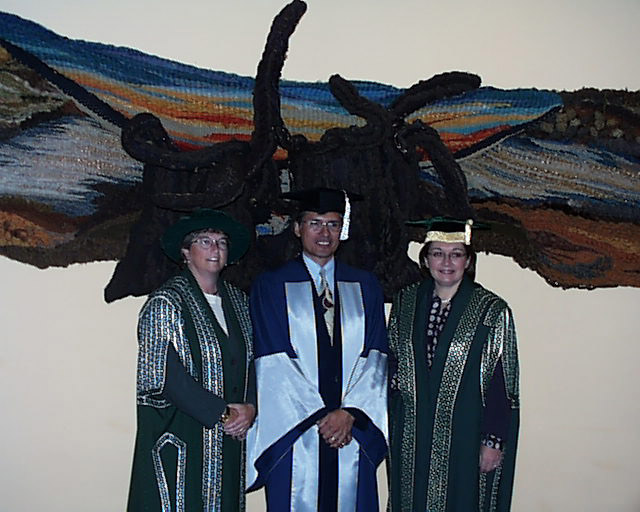(l-r) President Bonnie Patterson Honorary Graduate Matthew Coon Come Chancellor Mary May Simon