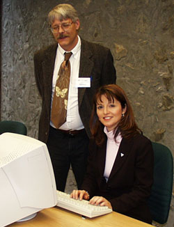 Assistant Director, Computing Services, looks on as Tina Molinari,