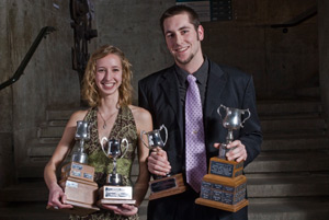Student athletes Evan Fleming and Stephanie Tabbert were awarded the Arthur Cup, the University’s most prestigious award for graduates who have demonstrated outstanding contribution, sportsmanship, participation, and leadership in the athletic programs.
