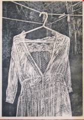 "This is a lithograph - you'll see its edition number in the lower left corner,” she said in a note to University staff. “Hanging crookedly on its hanger - it is as awkward as most young teenagers. An innocent dotted swiss against a darkening forest. I hope you will like it.”