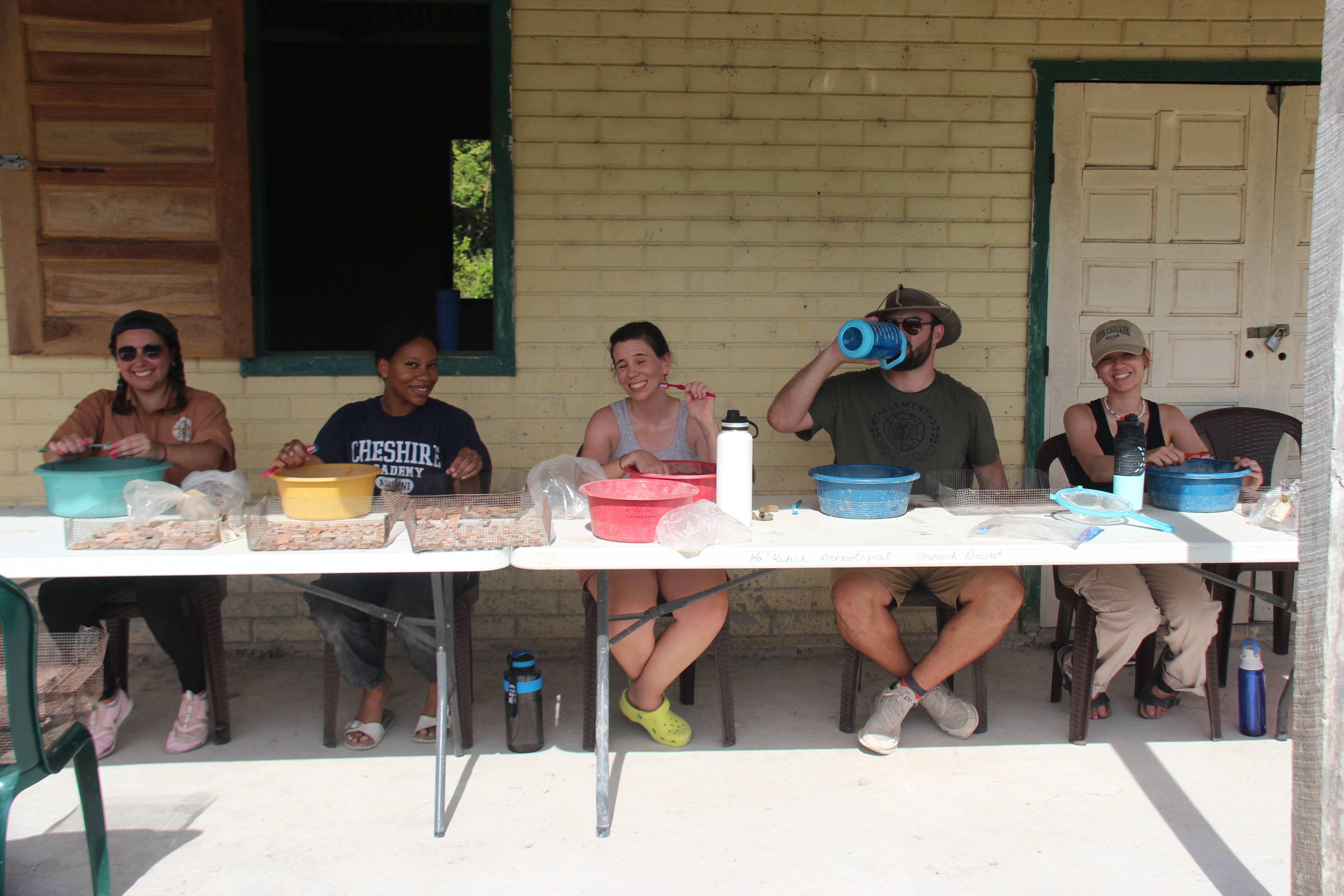 One thing students had to remember was to keep an eye out for animals; tarantulas, scorpions and snakes just to name a few. However, the real killers were the mosquitos and fire ants. Students spent Mondays to Fridays, from 8:00 AM to 4:30 PM on site learning how to create a unit, use a dumpy level and sift through the dirt. Saturdays were for town visits, to use WI-FI and go shopping, but mostly they were used by students to speak to family and friends back home. Sundays were for excursions to other archaeological sites, as they appear all over Belize. Halfway through, in week three, was the long weekend. Dr. Haines dropped the students off at the ferry in Belize city and they made their way to Caye Caulker, known to have some of the best scuba diving in the world, only next to the great barrier reef in Australia. A well-earned break after weeks spent in the muddy forest.