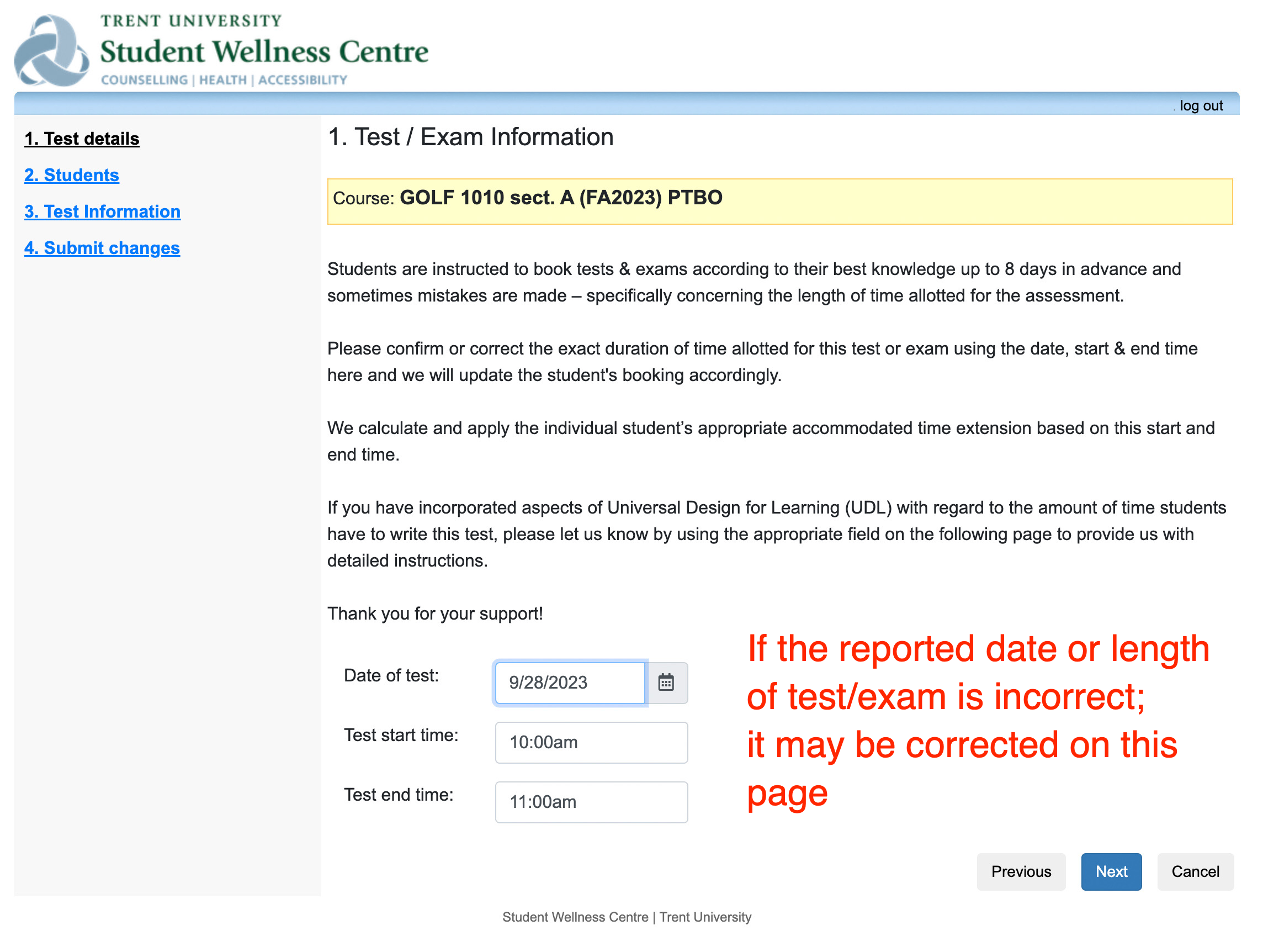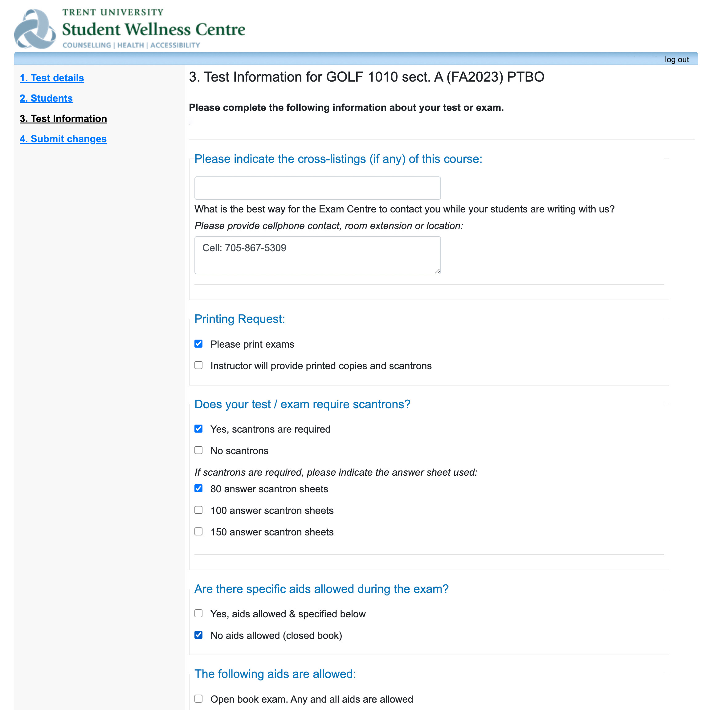 This step is the modern 'Exam Drop-off Checklist'. Please be a detailed as possible with allowed resources, aids or other invigilation instructions for your test/exam.
