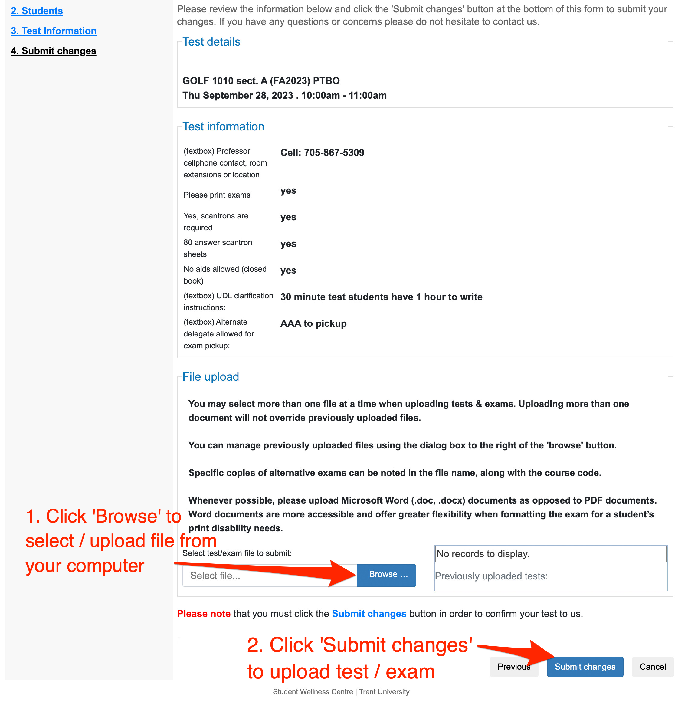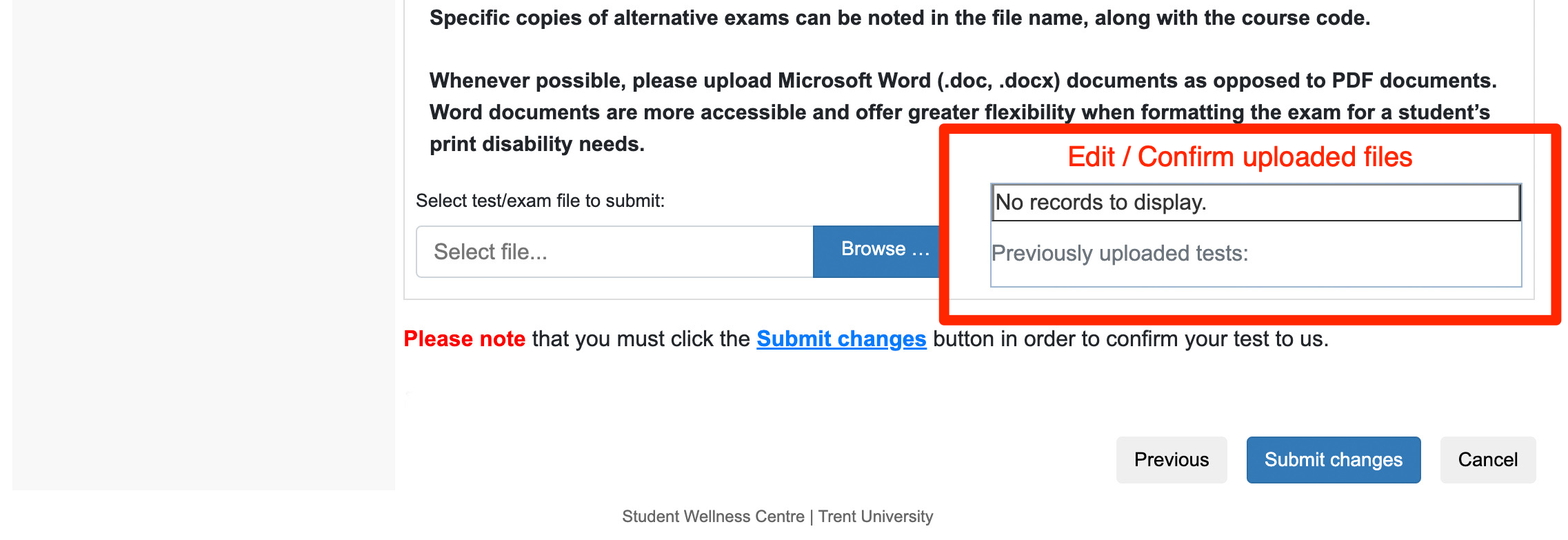 The most important part of the process! This is where you may upload accessible, electronic copies of your test or exam to the CAT for accessible format & printing purposes.